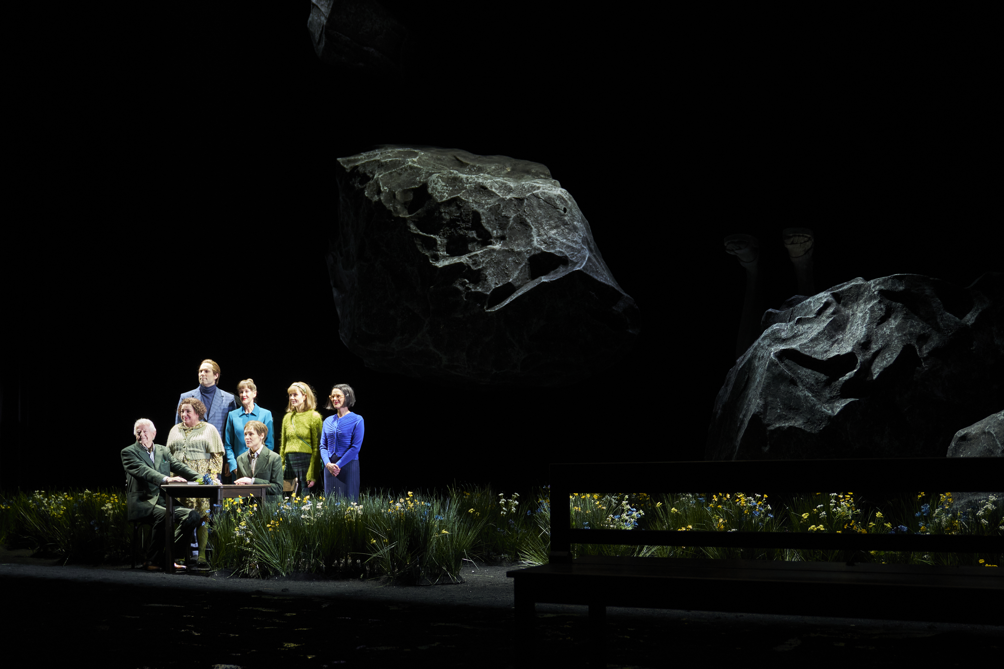 Der irrende PlanetMartin Schwab, Maria Happel, Max Simonischek, Sabine Haupt, Katharina Lorenz, Elisa Plüss, Dorothee Hartinger© Tommy Hetzel